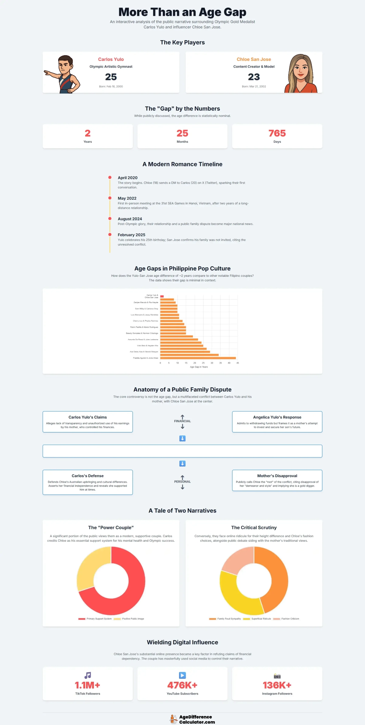The math is almost comically straightforward: Carlos (born February 16, 2000) is older than Chloe (born March 21, 2002) by exactly 2 years, 1 month, and 5 days. That’s 765 days for anyone counting—which is wild because in Filipino celebrity culture, that’s basically nothing.